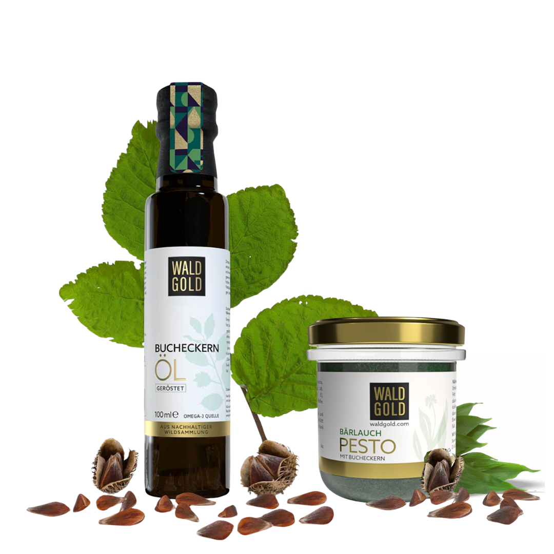Die Bucheckern stammen aus europäischen Laubwäldern und wurden von Johannes, dem Gründer von Waldgold, persönlich gesammelt. So vereinen unsere Wildöle regionale Spezialität, Superfood-Potenzial und echte Handarbeit – ideal für bewusste Genießer:innen, die Wert auf Nachhaltigkeit, Geschmack und Qualität legen.